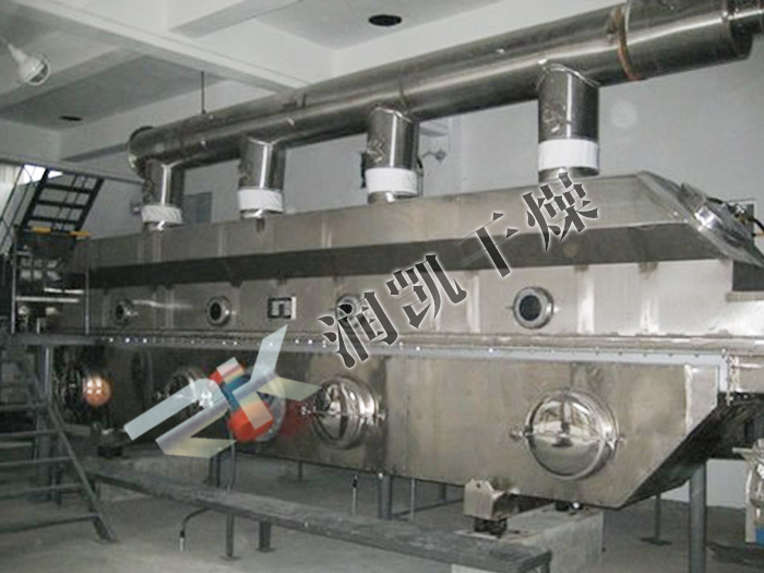 ③由于施加振動,可使最小流化氣速降低,因而可顯著降低空氣需求量,進而降低粉塵層夾帶,配套熱源,風機,旋風分離器等也可相應縮小規格,成套設備降低,節能效果明顯。可方便地依靠調整振動參數來改變在機內滯留時間。其活塞流式的運行降低了物料粒度均勻性及規則性要求,易于獲得均勻的干燥產品。