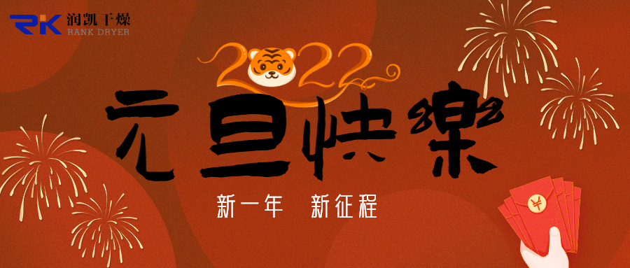 元旦快樂2021年,已經終結,2022年,已經啟程。1月1日是元旦,元旦是全新的開始,元旦是一年的開頭。新的一年,潤凱干燥繼續為您提供優質的產品、及時的服務!2021年,已經畫上圓滿的句號,這一年里,有快樂,也有失落,有遺憾,也有收獲。新的一年,與潤凱干燥一起開啟無限可能!2021年,我們努力過、奮斗過、付出過,所以我們無怨無悔,無懼無愧。2022新年大吉!踏上全新的征途,帶著心中的夢想,向未來出發,向目標前進。 祝:潤凱干燥的每一位伙伴,元旦快樂,幸福美滿,新年快樂,財源不斷!